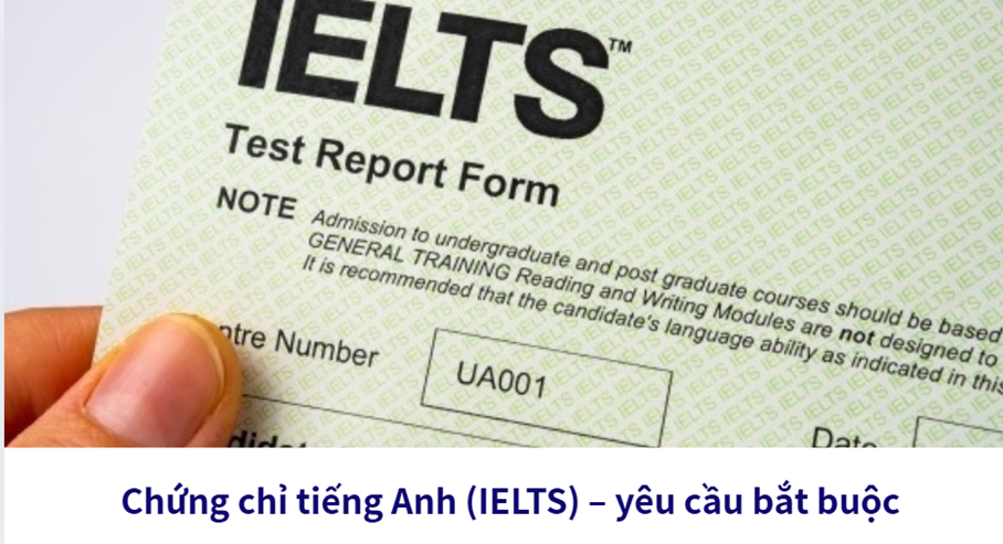 - Chứng chỉ tiếng Anh (IELTS) – yêu cầu bắt buộc